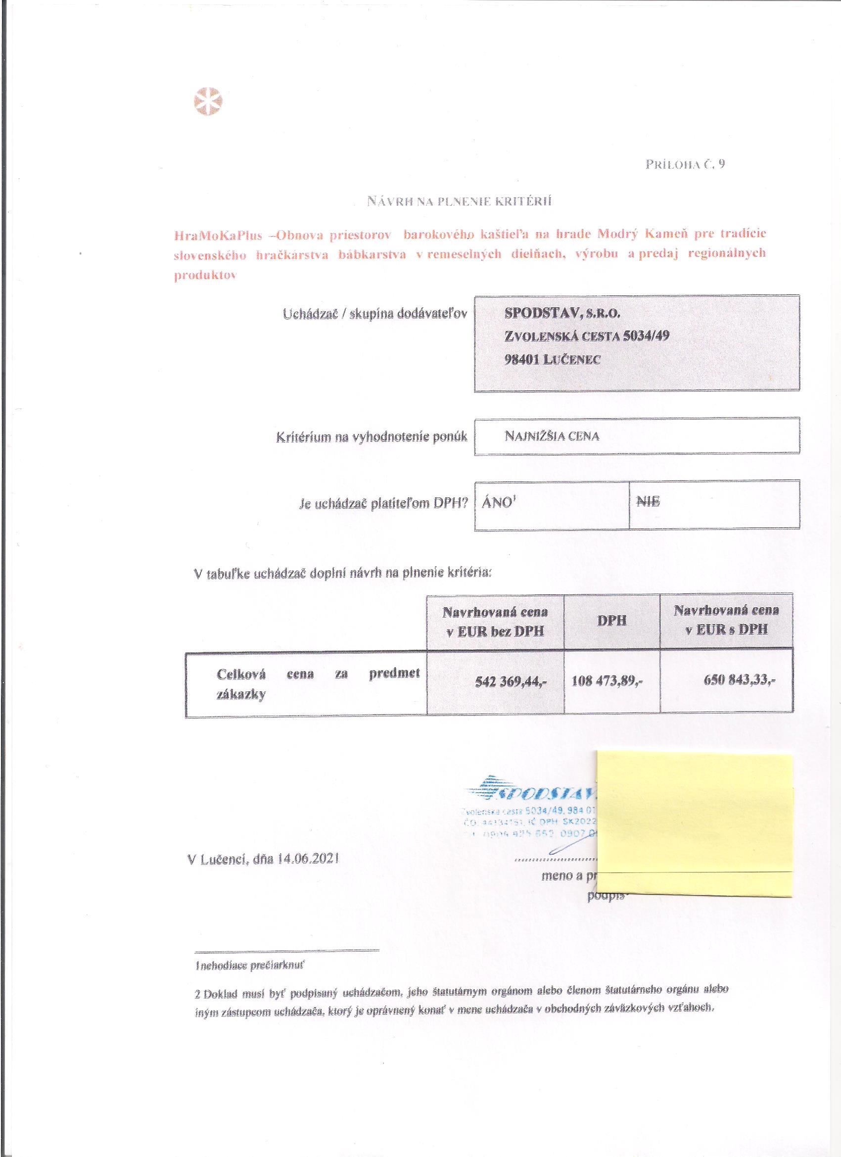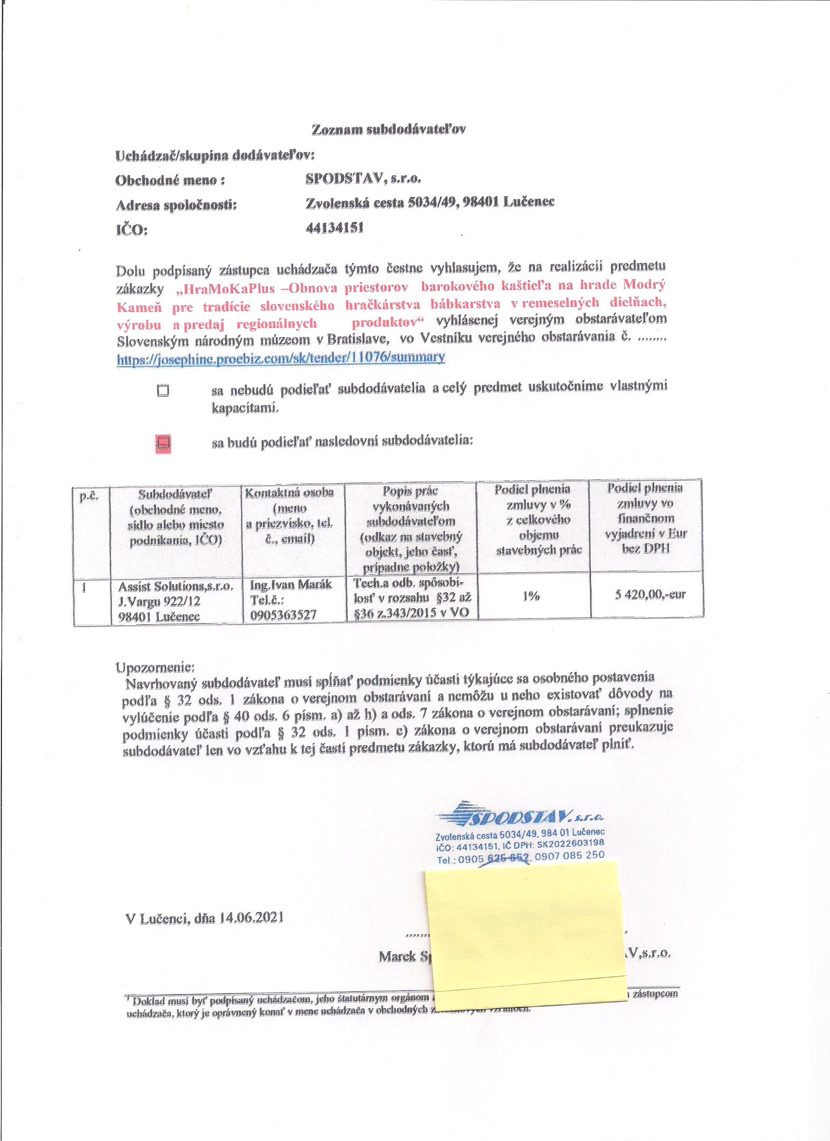 Predmetom zákazky je projekt obnovy barokového kaštieľa - „HraMoKaPlus – Obnovenie priestorov barokového kaštieľa na hrade v Modrom Kameni pre tradíciu slovenského hračkárstva a bábkarstva v remeselných dielňach, výroba a predaj regionálnych produktov“, ktorý je v správe Slovenského národného múzea - Múzea bábkarských kultúr a hračiek.