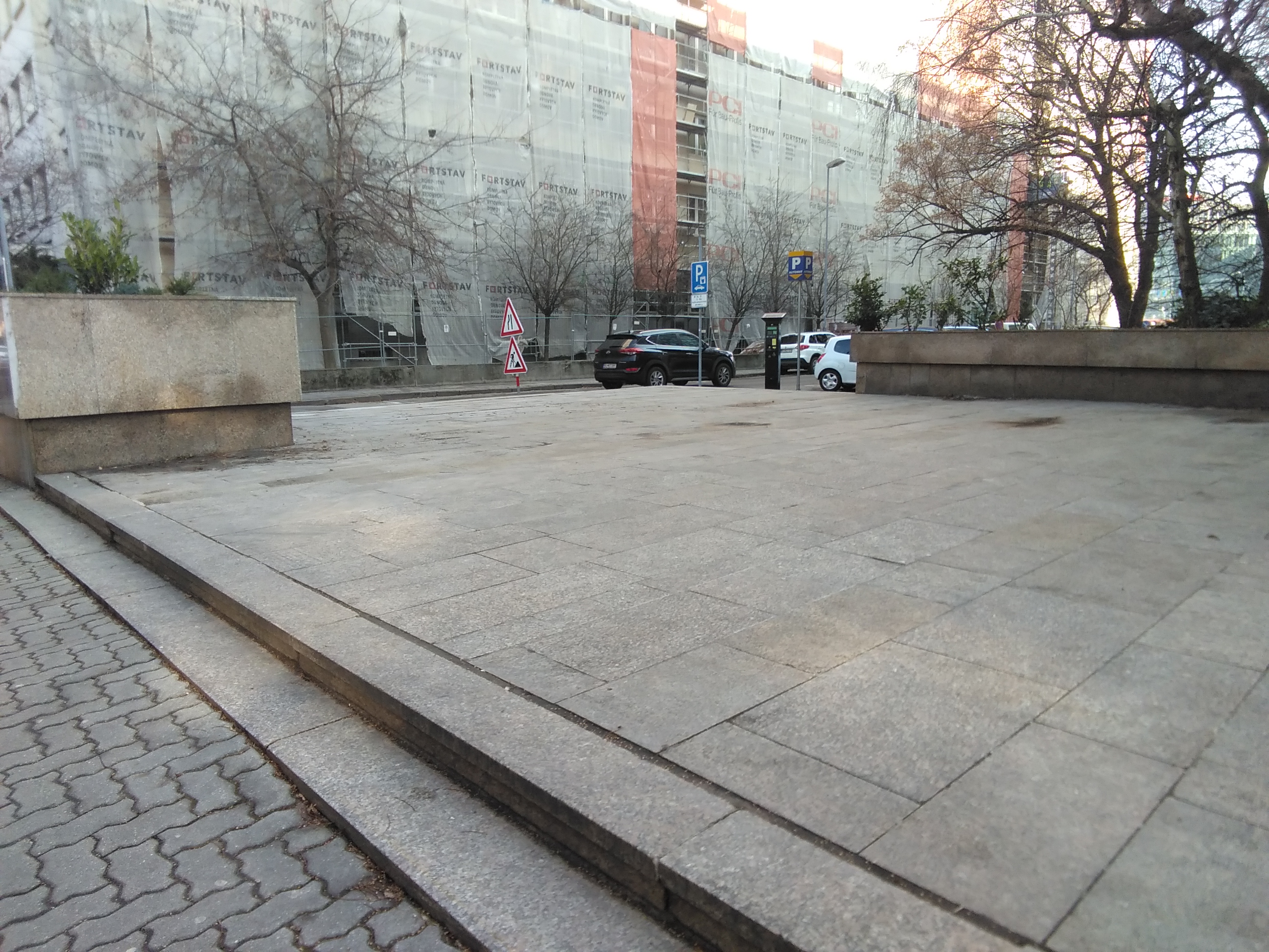 Sanácia pochôdznej plochy zo žulovej dlažby pred vstupom do objektu administratívnej budovy vyspravením resp. výmenou poškodenej dlažby za novú a nanesením hydroizolačnej vrstvy aby sa zamedzilo prenikaniu vlhkosti do priestorov na 1.PP pod pochôdznou plochou. Zároveň sa rieši aj sanácia vnútorných priestorov na 1.PP, kde sa odstránia a nahradia vlhkosťou zdegradované omietky stien a stropu a zároveň sa vyspravia poškodené miesta nosných konštrukcií.