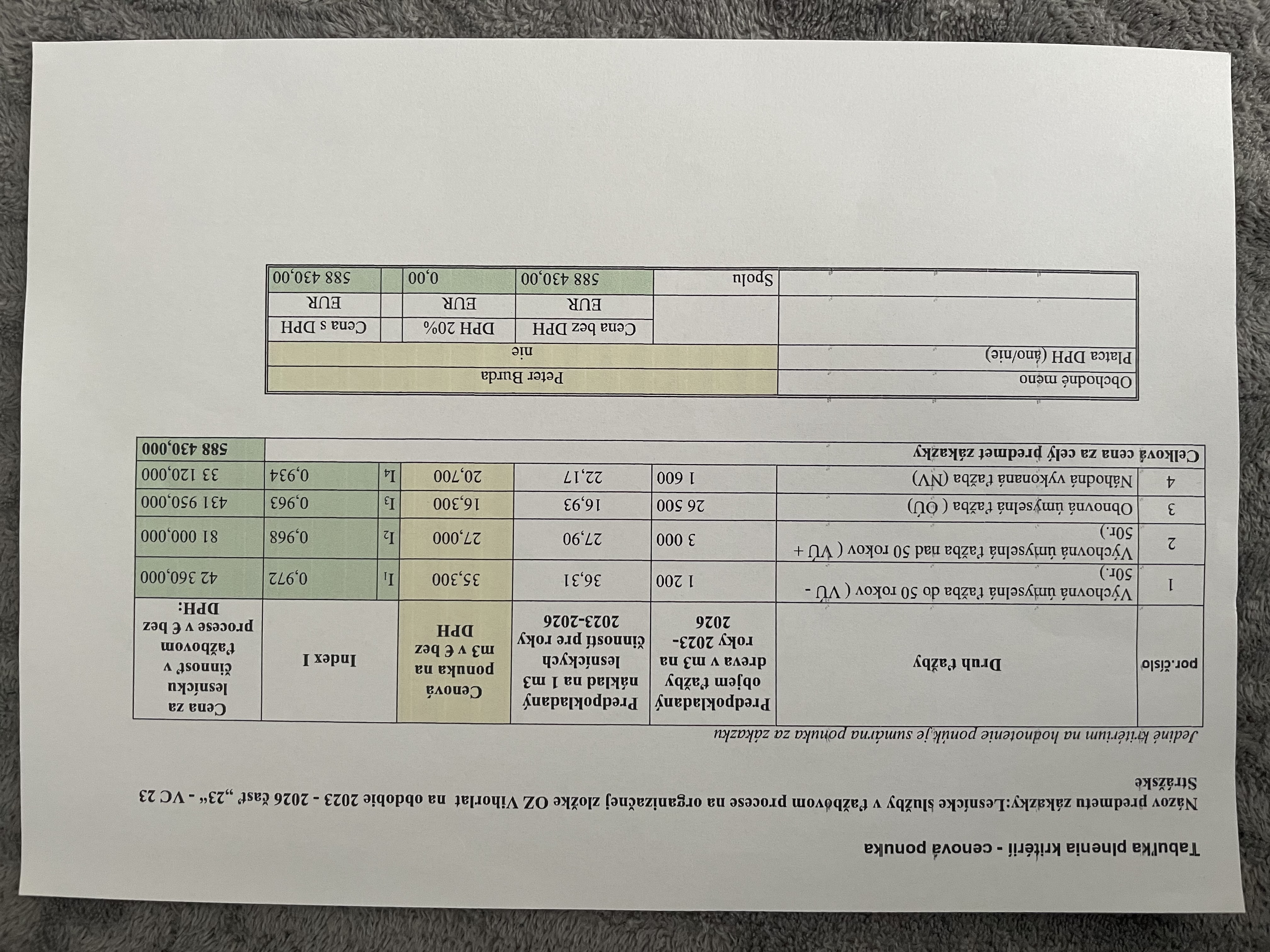 Príloha č.6 Tabuľka plnenia kritérií - cenová ponuka