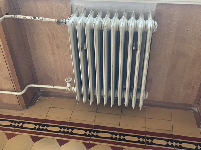 radiátorů za litinové v suterénu, zapravení zdí za tělesy.