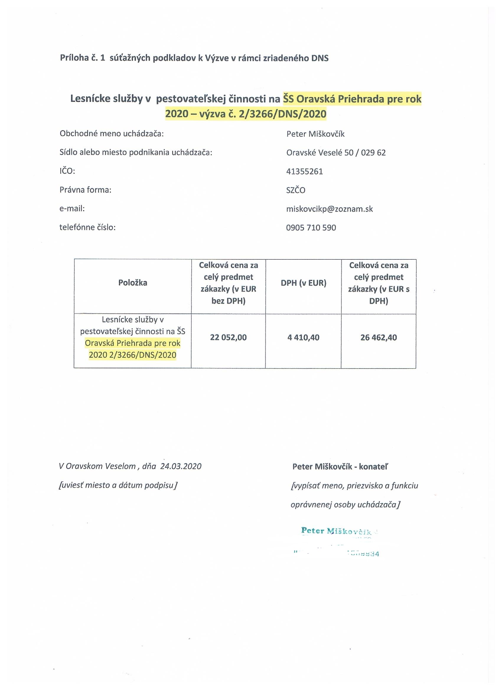 Príloha č. 2 Opis predmetu zákazky - Tabuľka plnenia kritérií - cenová ponuka