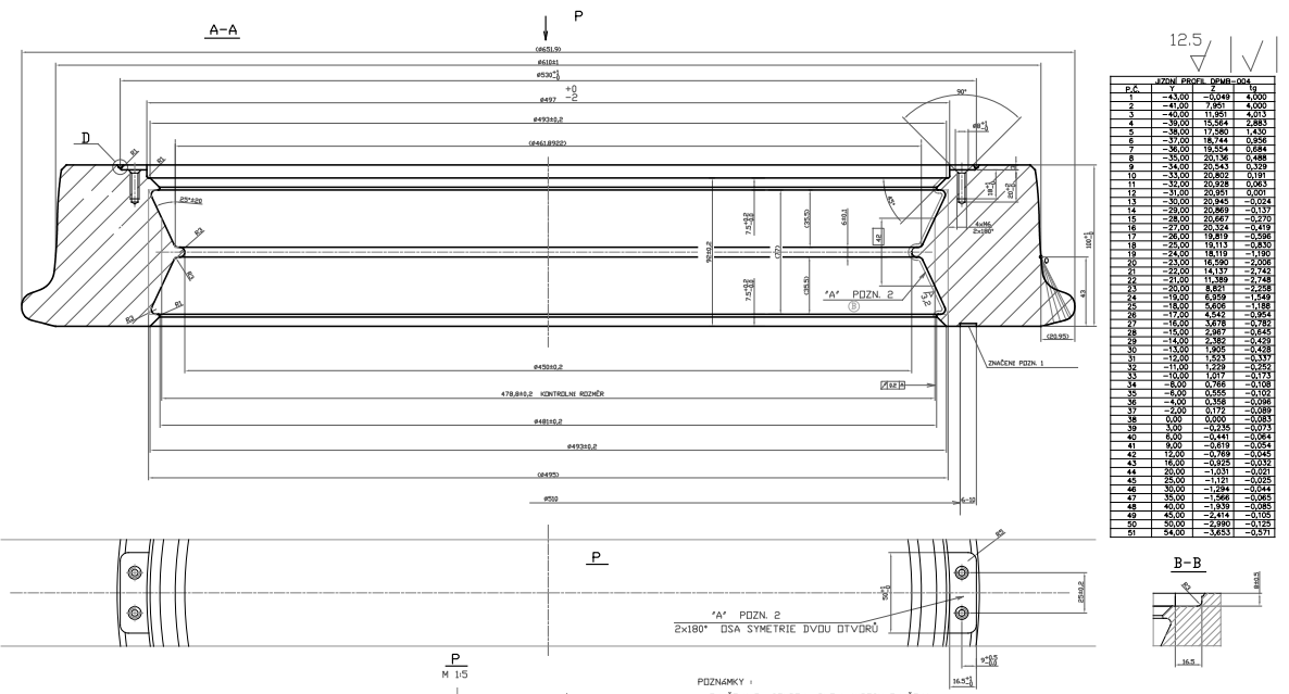 Ad 2) Zadavatel poskytuje orientační část z výkresu, kde je provedení opracované obruče vyobrazeno. Plnohodnotné výkresy pro kola průměrů 610mm a 700mm budou poskytnuty vybranému dodavateli.