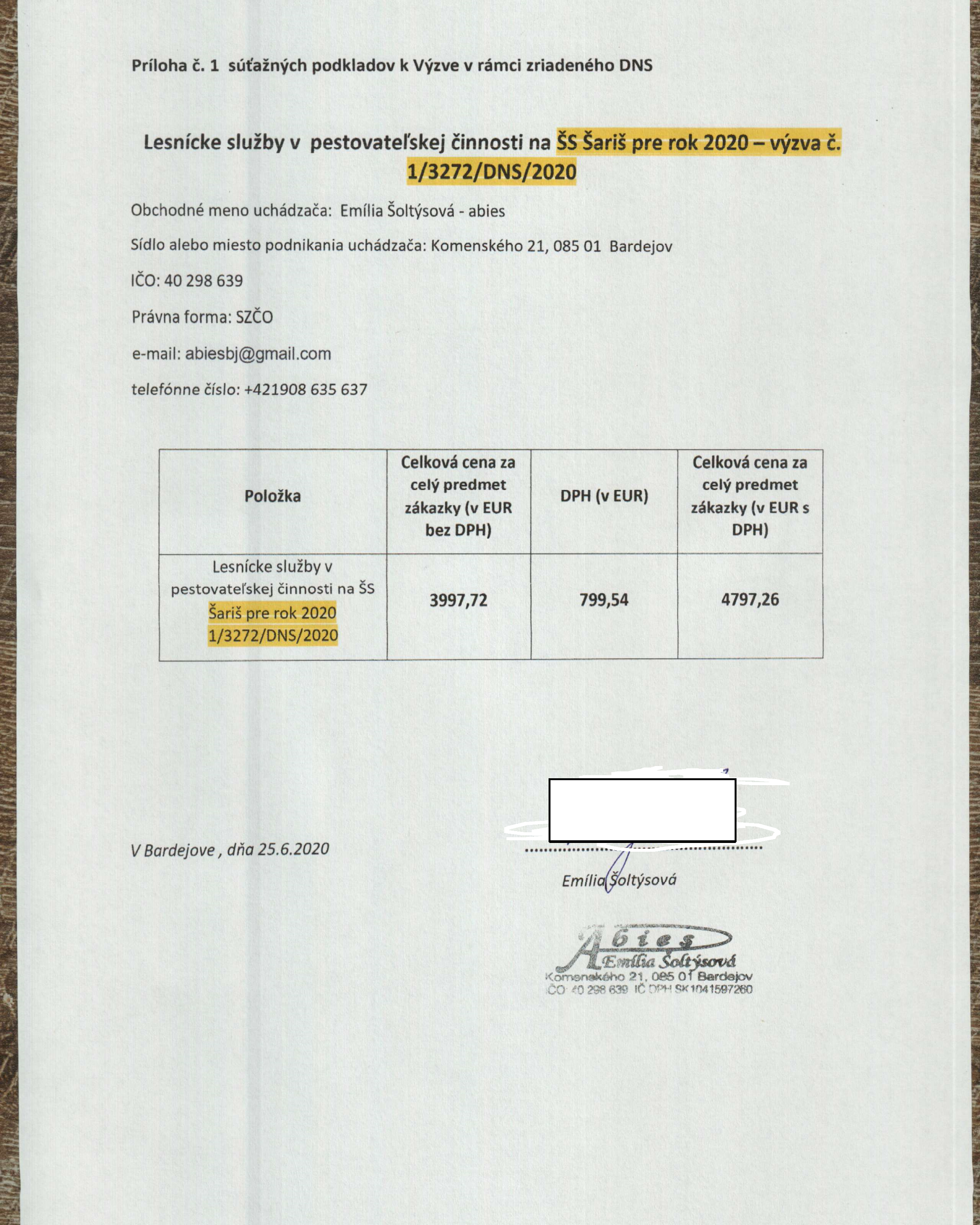 Ponuka uchádzača - Emília Šoltýsová - abies