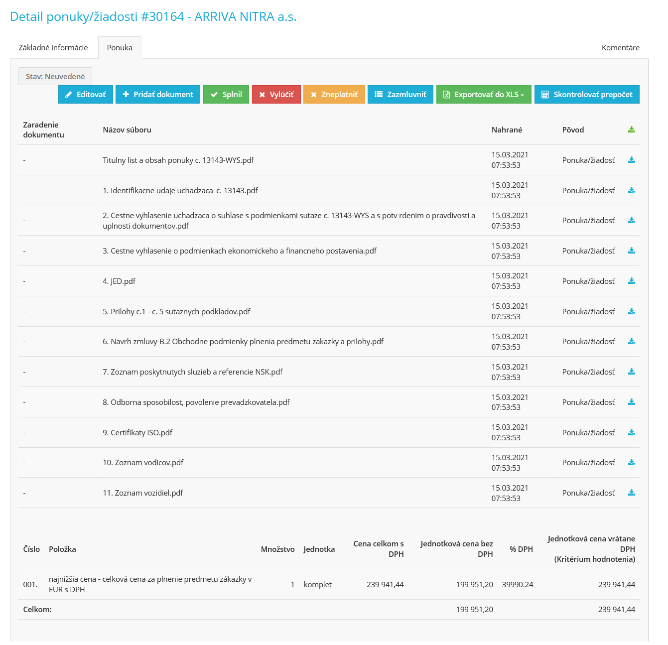 Ponuky uchádzačov