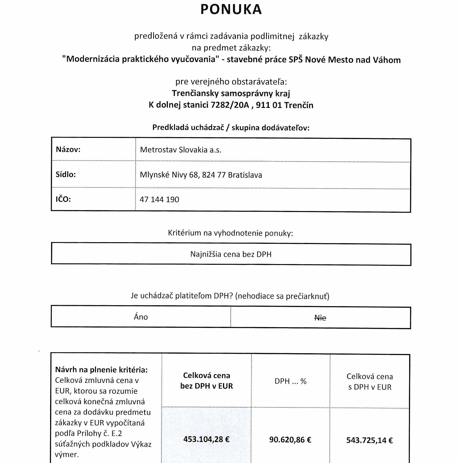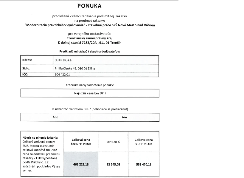 Informácia o výsledku vyhodnotenia ponúk