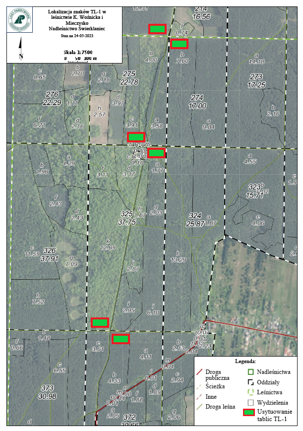 Zalacznik nr 2-Lesnictwo Mieczysko usytuowanie znakow TL-1 ORTOFOTO.png