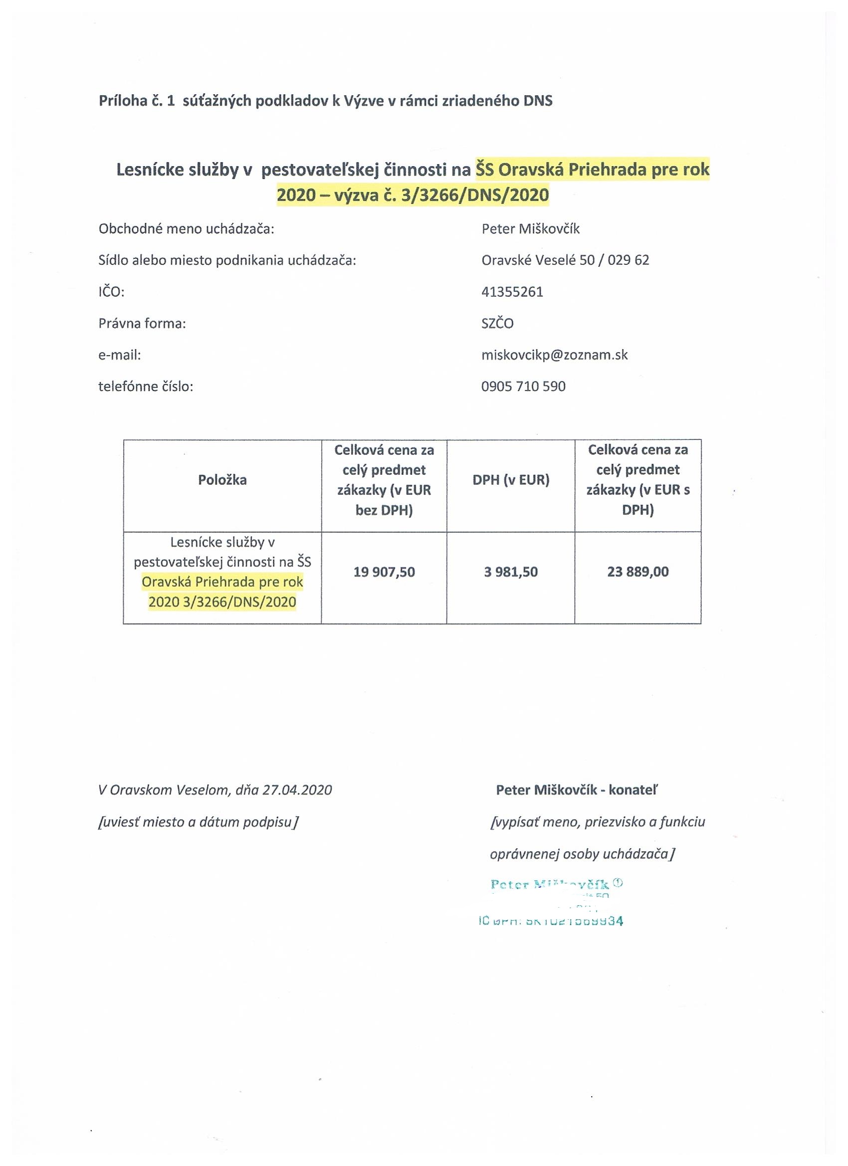 Ponuka uchádzača - Peter Miškovčík