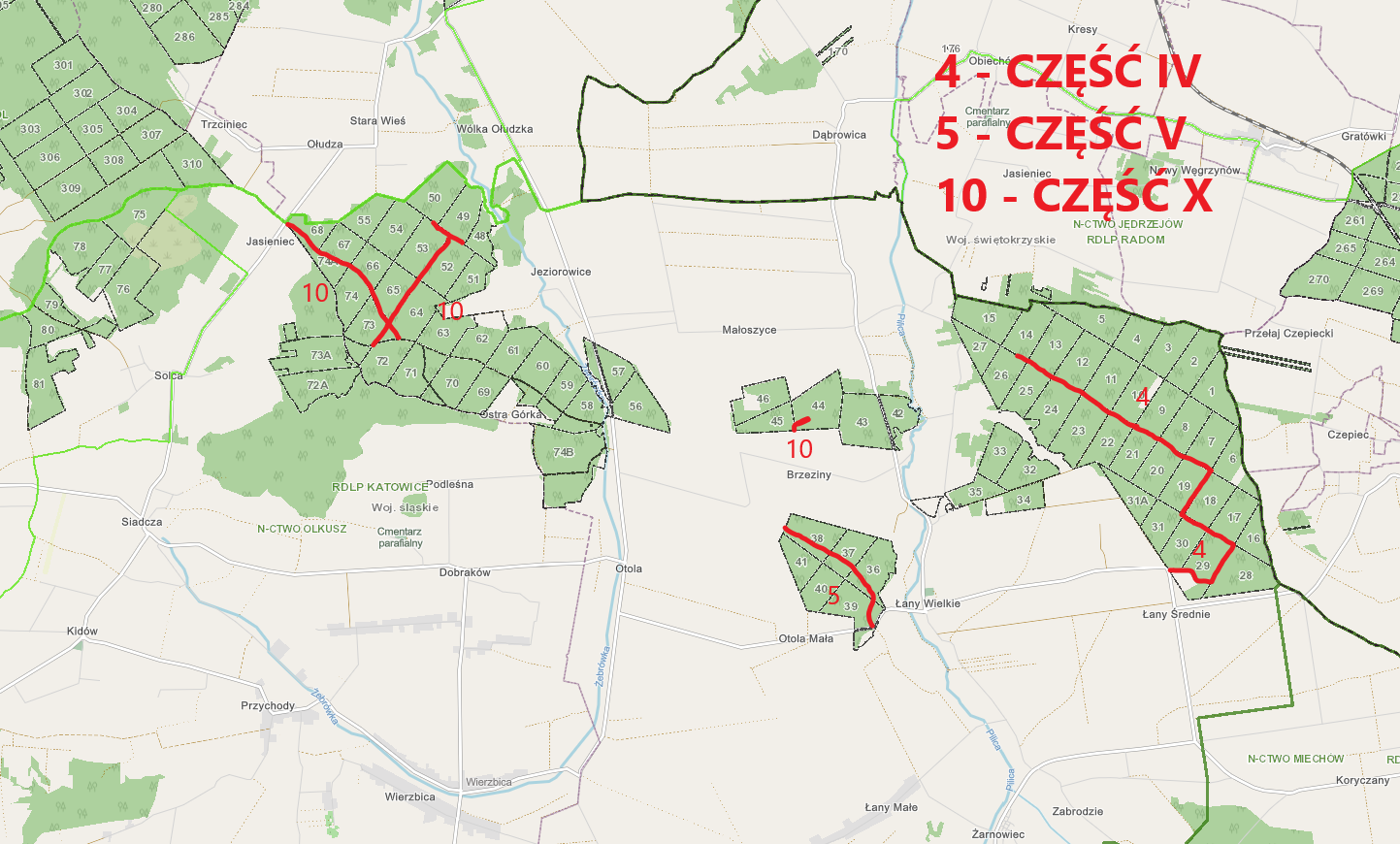 Część X - Naprawa nawierzchni gruntowej drogi leśnej nr L30/01/18-1 oraz uzupełnienie ubytków w nawierzchni tłuczniowej dróg leśnych nr 220/1076 i 220/892 w Leśnictwie Żarnowiec