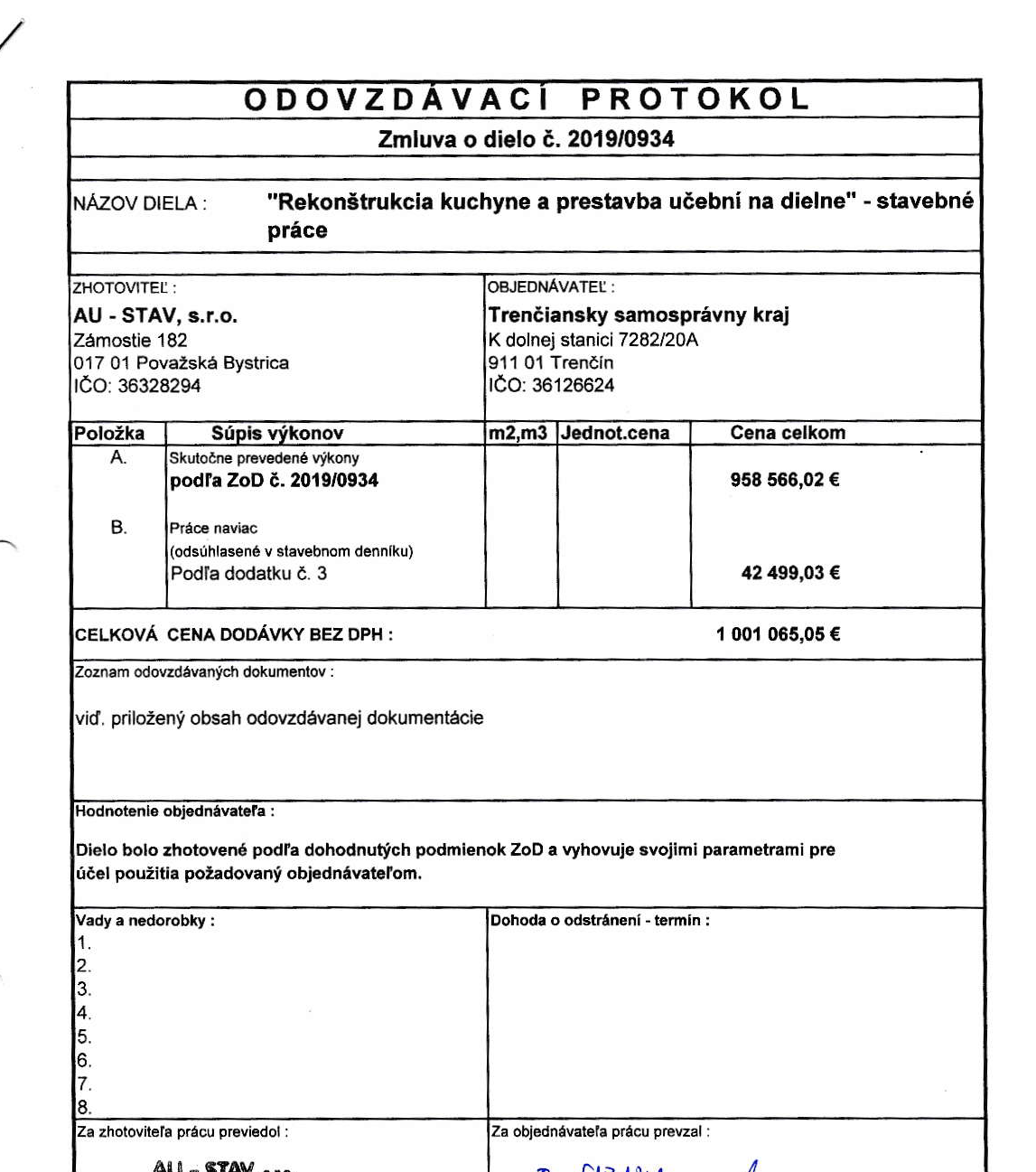 Odkaz na zverejnenú zmluvu o dielo a dodatok č. 1, 2 a 3 k zmluve o dielo