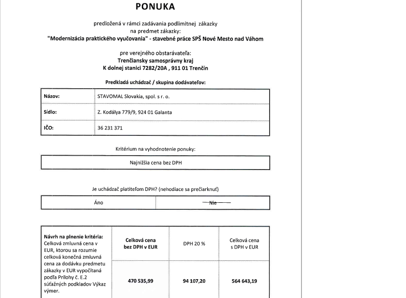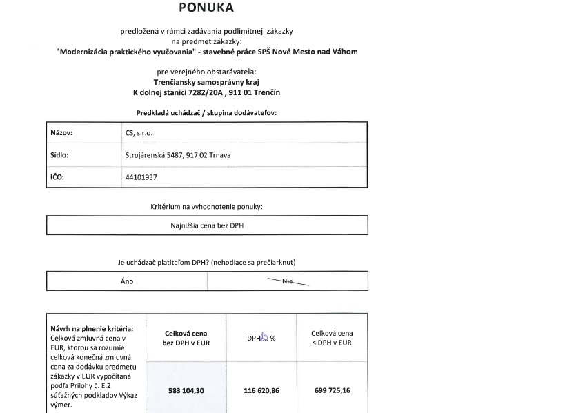 Ponuky uchádzačov