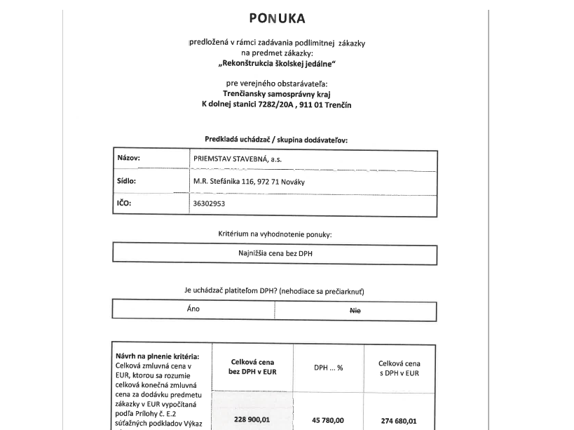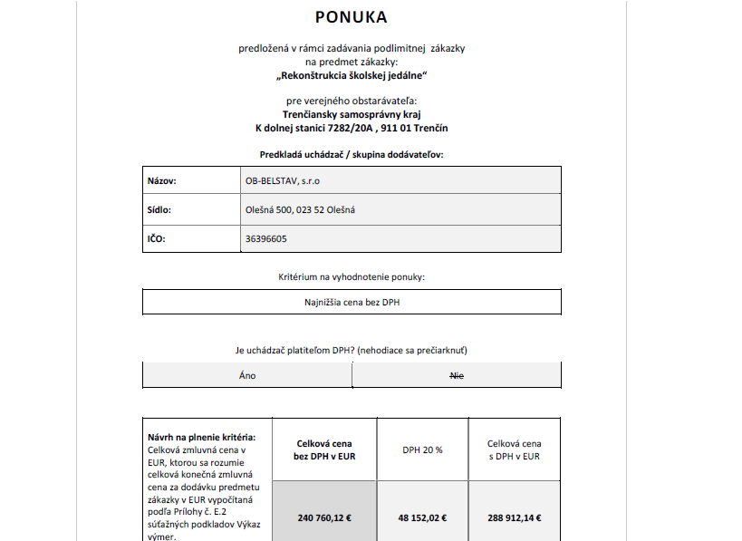 Zápisnica o vyhodnotení ponúk - kritériá - finálna