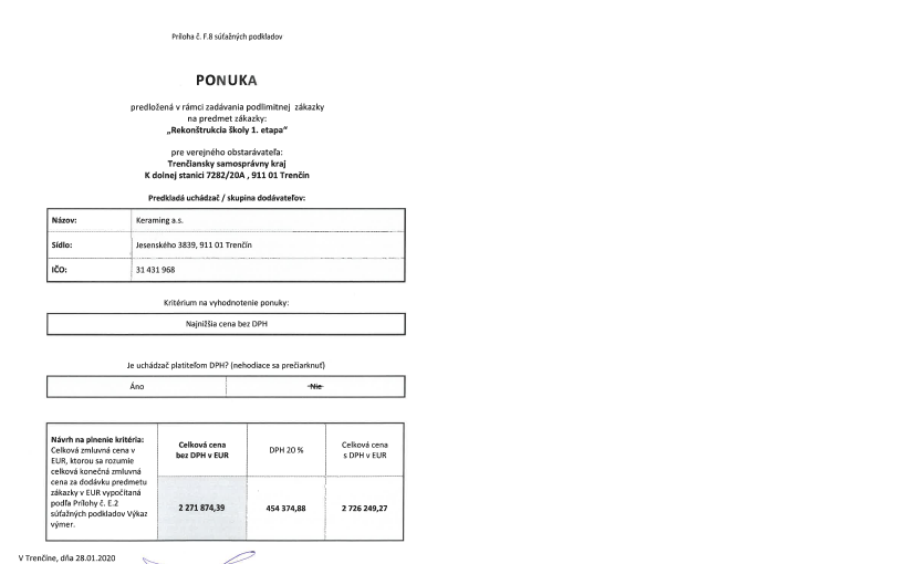 Zápisnica o vyhodnotení ponúk - kritériá 1.
