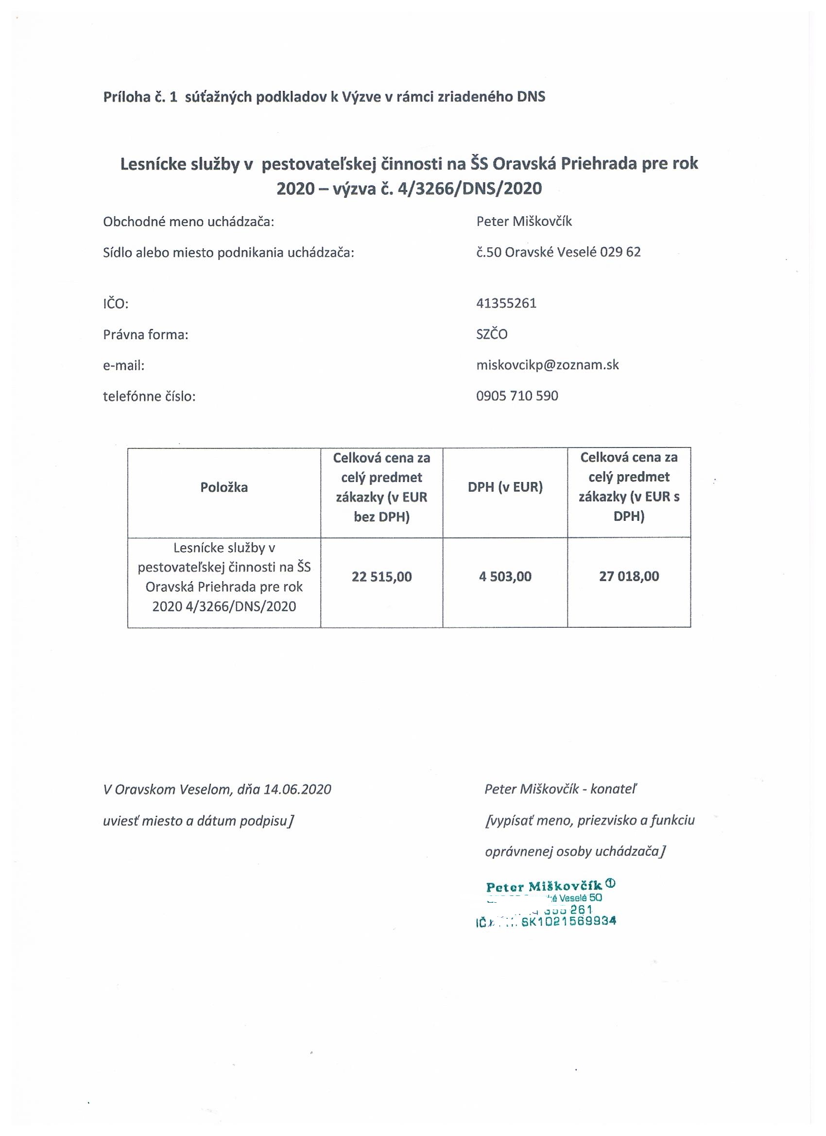 Informacia o vysledku vyhodnotenia ponuk - 4/3266/DNS/2020