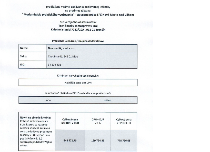Informácia o výsledku vyhodnotenia ponúk
