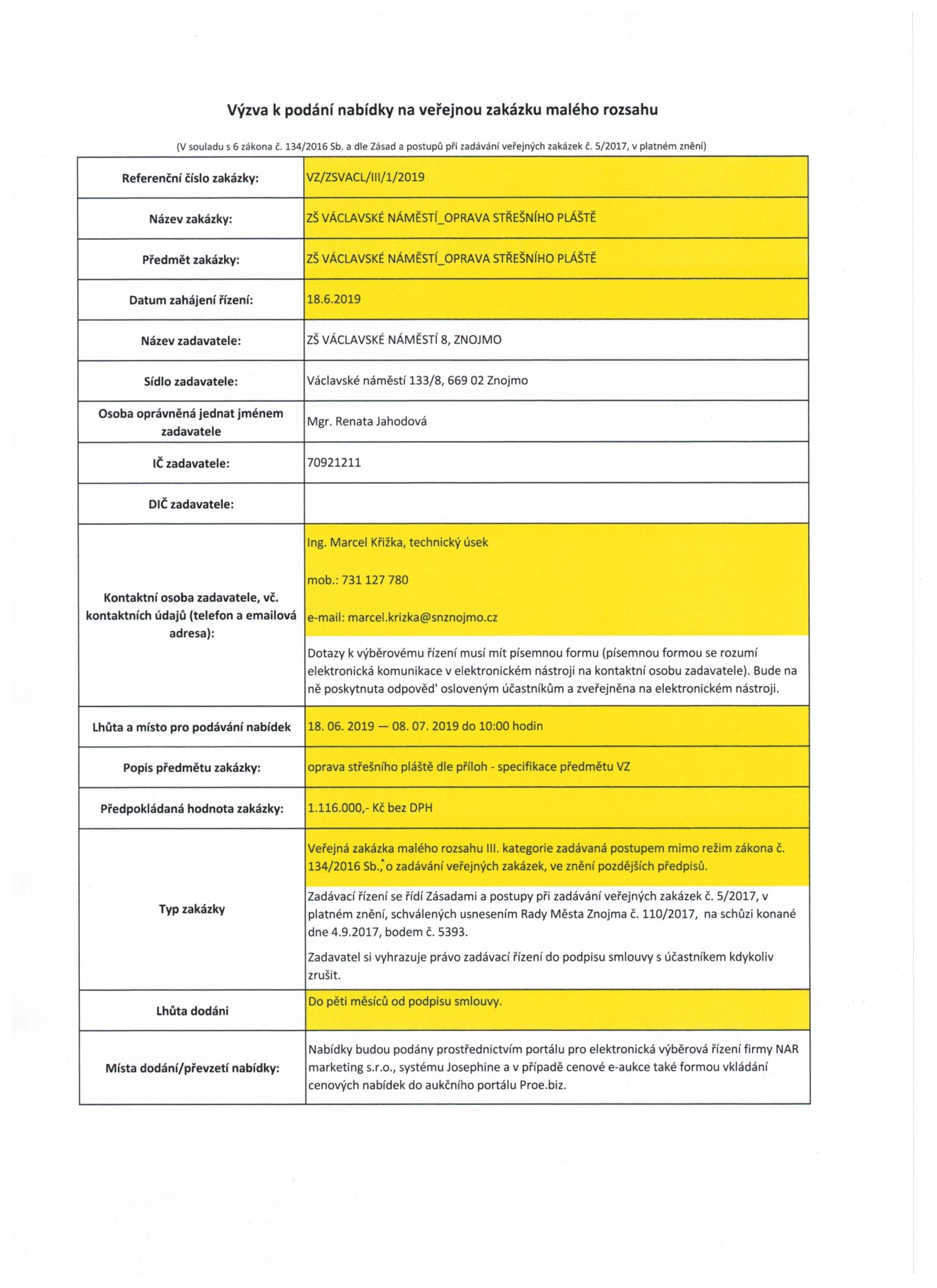 Karta obstarávania #VZ/ZSVACL/III/1/2019