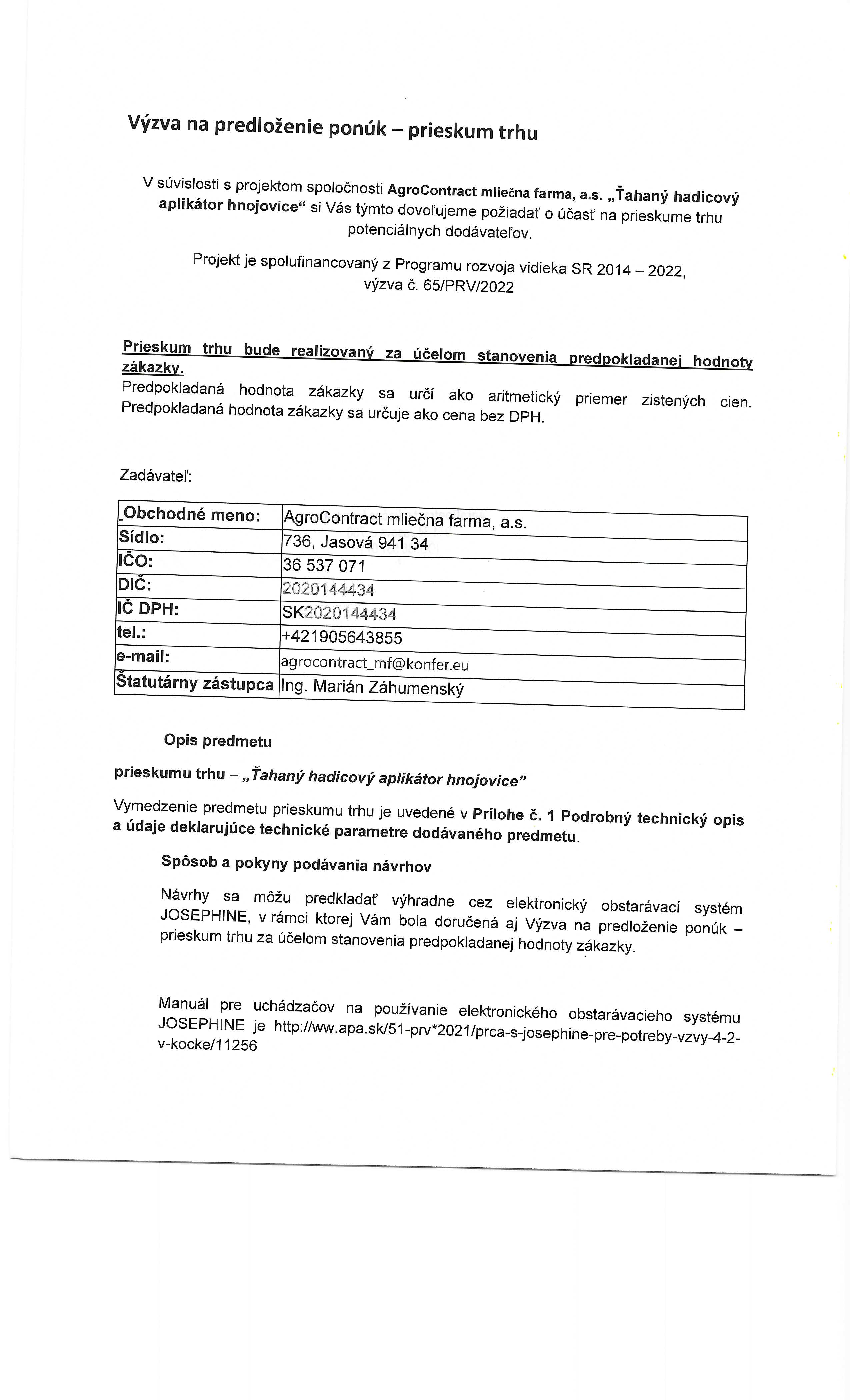prieskumu trhu – „Ťahaný hadicový aplikátor hnojovice”